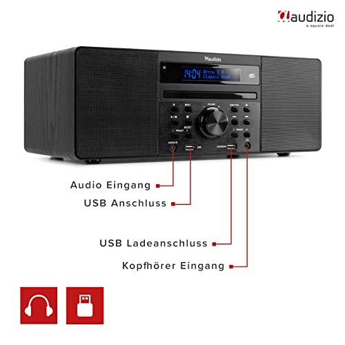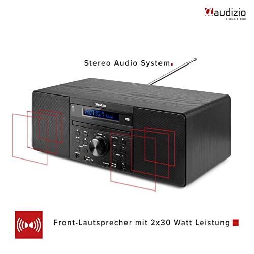 Audizio Prato – DAB Radio mit CD Player, MP3-Player, Bluetooth Radio, USB, DAB+, FM-UKW, Fernbedienung, Sleeptimer, 60…