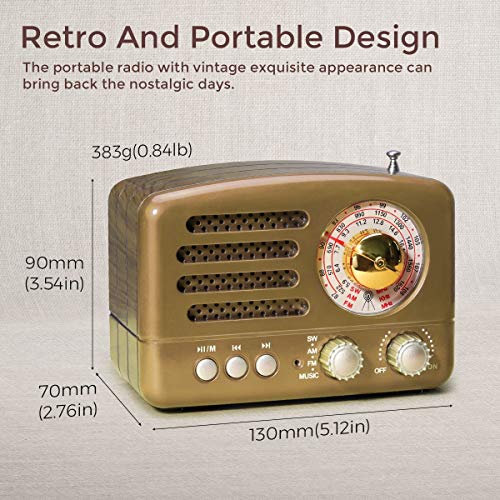 ♥Klassisches und Tragbares Design: Wie Sie sehen können, stellen Sie das vintage radio retro einfach auf Ihren Tisch, sein Retroauftritt wird sicherlich alte Zeiten in einer Sekunde neu erfinden. Und dank seiner tragbaren Größe (130*70*90mm), dem Gewicht von 383g können Sie jetzt jederzeit und überall, ob drinnen oder draußen, der komplizierten High-Tech entkommen und ohne großen Aufwand Radio hören. Das klassische radio retro design ist auch das beste Geschenk für Ihre Lieben!