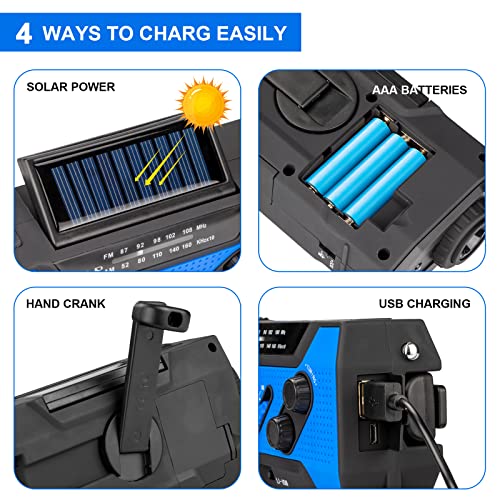 Solar Radio Tragbar Qoosea Kurbelradio Wiederaufladbare Dynamo Radio mit AM/FM/WB Eingebaute 4000mAh Wiederaufladbare…