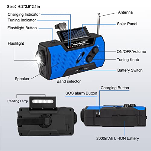 Specification: Solar Radio Tragbar Qoosea Kurbelradio Wiederaufladbare Dynamo Radio mit AM/FM/WB Eingebaute 4000mAh Wiederaufladbare…