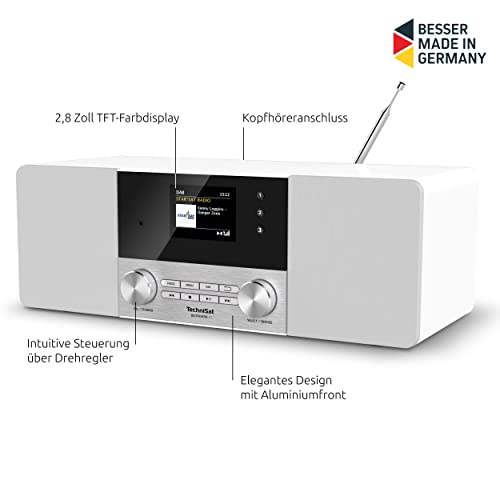 TechniSat DIGITRADIO 4 C – Stereo Digital-Radio (DAB+, UKW, Farbdisplay, Bluetooth-Audiostreaming, Kopfhöreranschluss, AUX-Eingang, Radiowecker, OLED Display, 20 Watt RMS, Elac Lautsprecher) weiß
