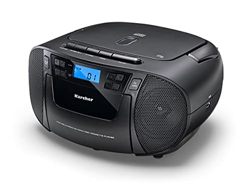 Karcher RR 5045 tragbares CD Radio (Boombox mit CD-Player, Kassette, UKW Radio, Batterie/Netzbetrieb, USB & AUX-In…