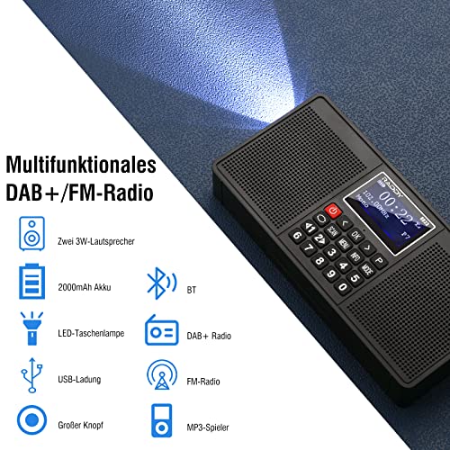 Vielseitiges Musikwiedergabegerät: Sie können nicht nur DAB/DAB+/FM-Radio einstellen, um die neuesten Informationen in Ihrer Freizeit zu empfangen, sondern auch Musik von Ihrem Telefon oder von Ihrer SD-Karte oder einem USB-Stick abspielen, um einen entspannten Moment mit diesem vielseitigen Radio zu genießen.