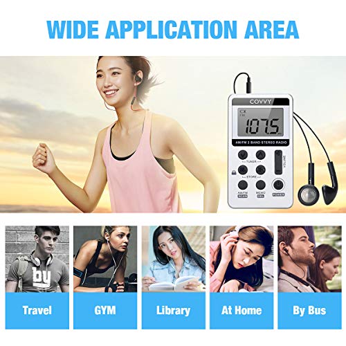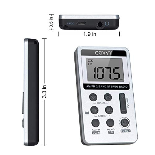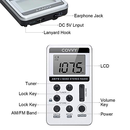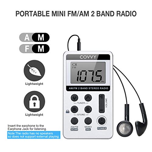 Specification: AM/FM Tragbares Radio,Covvy Digitales Pocket Mini Radio mit 500mAh 3.7V Wiederaufladbarer Akku und Kopfhörer (White)