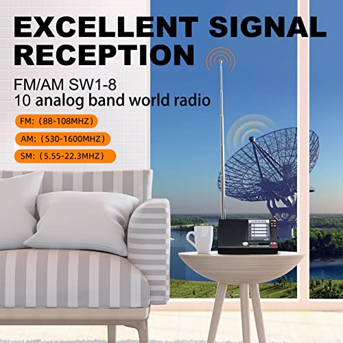 【Hervorragender Signalempfang】 Der DSP-Rauschunterdrückungschip und die lange einziehbare Antenne sorgen dafür, dass dieses Kurzwellenradio ein starkes Qualitätssignal erhält, um die meisten Frequenzbänder in Ihrer Nähe perfekt zu empfangen. Frequenzbereich: FM 88-108 MHz, AM 530-1600 KHZ, SW 5,55- 22,3 MHz