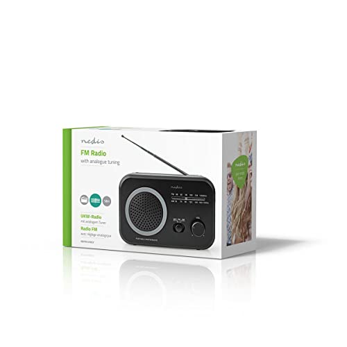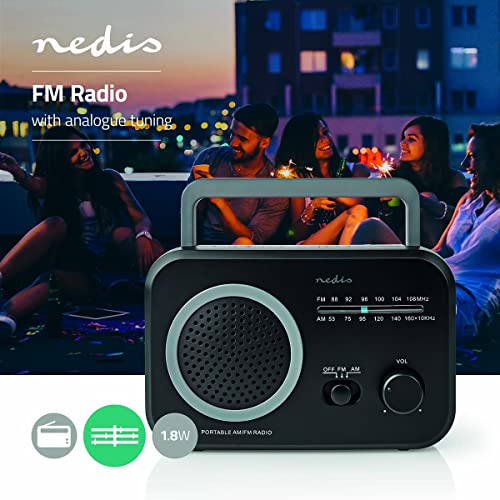 Nedis – FM-Radio – Tragbare Ausführung – AM/FM – Batteriebetrieben/Netzstromversorgung – Analog – 1.8 W – Scharz-weiß…