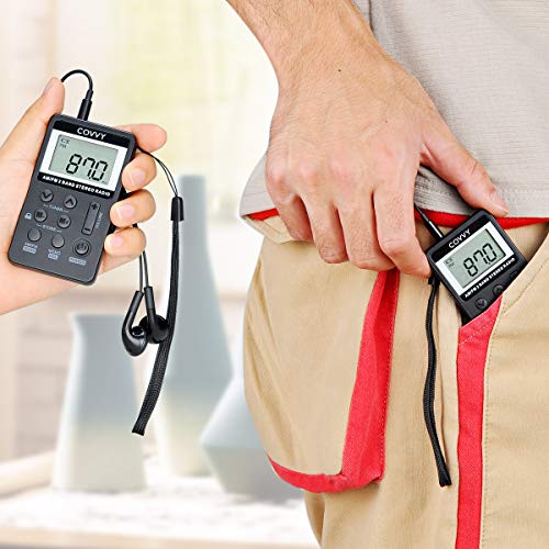 AM/FM Tragbares Radio,Covvy Digitales Pocket Mini Radio mit 500mAh 3.7V Wiederaufladbarer Akku und Kopfhörer (Black)
