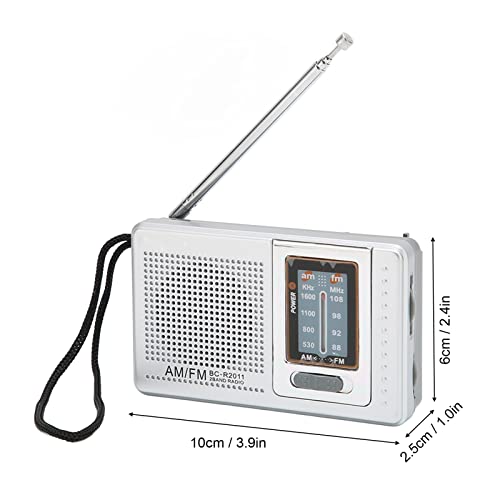 Specification: Tragbares Taschenradio, Kleines Radio AM/FM Mini Transistor Radio Kleines Radio Batterieradio Retro Silbergrau…
